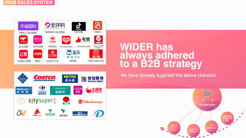 WIDER has an omnichannel sales system. Everything from brand introduction to brand incubation, marketing, and digital operations is handled by the WIDER team.